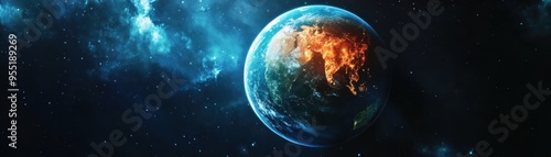 Beautiful image of Earth from space, showcasing vibrant continents and atmospheric details against the backdrop of a starlit universe.