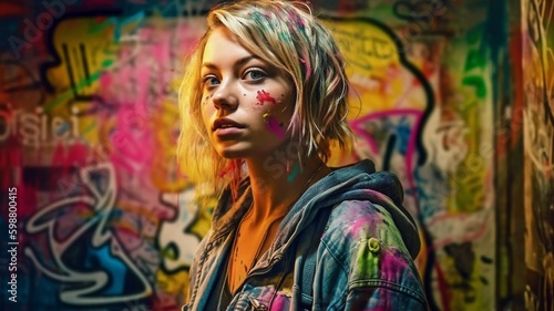 Beautiful lady portrait, punk style, art pattern wall. GENERATE AI