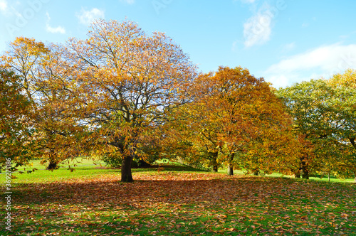 beautiful landscape with green grass colourful trees suitable for a wallpaper