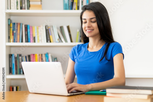 Beautiful latina shopping online at computer