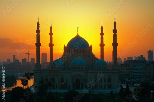 Beautiful mosque as a place of worship for Muslims created with Generative AI