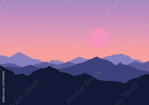 Beautiful mountains in the evening. Vector illustration in flat style.