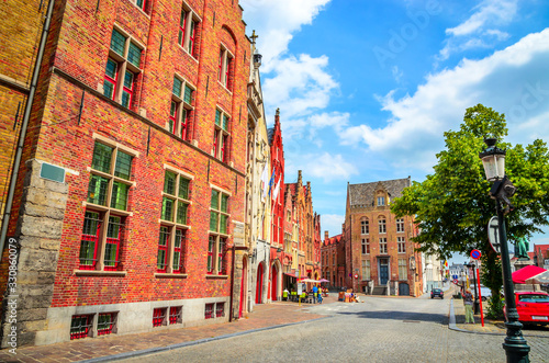 Beautiful narrow streets and traditional houses in the old town of Bruges (Brugge), Belgium