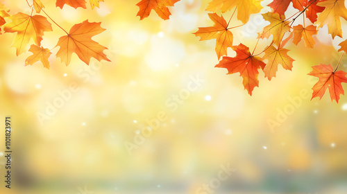 Beautiful orange and golden autumn maple leaves with blurred park background in sunlight