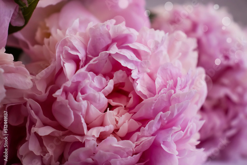 Beautiful peony flower on a light background frame