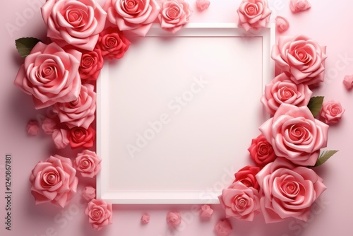 Beautiful Pink Roses in a Frame Setting for Elegant Decor, Romantic Concepts, or Creative Art Displays