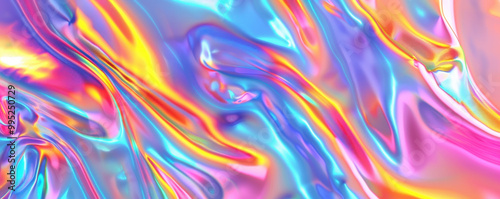 Beautiful Rainbow Texture: Holographic Foil with Magical Background. Fantasy Colorful Card with Iridescent Art. Trendy Punchy Pastel