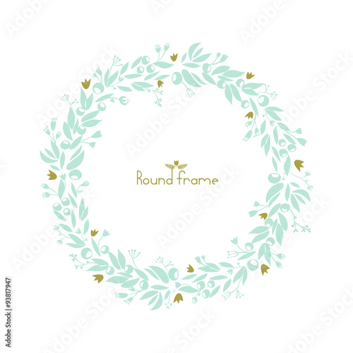 Beautiful round floral frame. Frame with flowers and leaves. Soft colors.