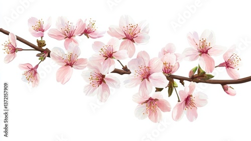 Beautiful sakura flowers isolated on white illustration