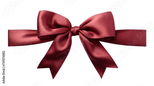 Beautiful shiny silk burgundy bow isolated on transparent background, decorative design png element, clip art festive object.