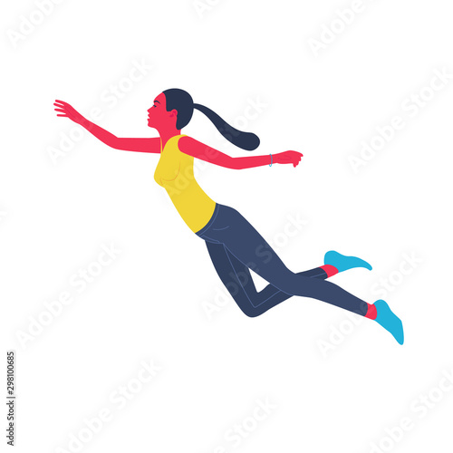 Beautiful slender girl in flight or jump on a white background. Vector illustration.