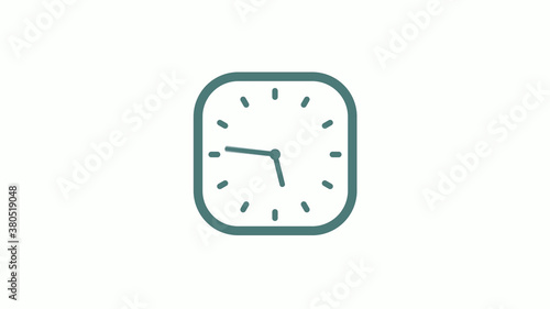 Beautiful square cyan gray counting down 12 hours clock icon on white background