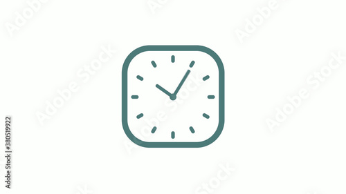 Beautiful square cyan gray counting down 12 hours clock icon on white background