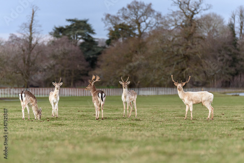Beautiful Stag Manchurian Sika Deer, Cervus nippon mantchuricus, standing in a meadow, in England
