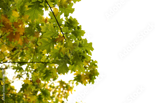 Beautiful trees with bright leaves against sky on autumn day, low angle view