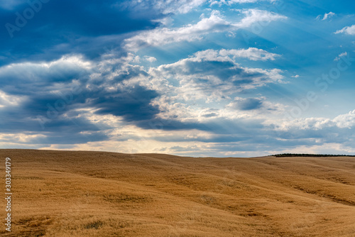 Beautiful Tuscany landscape with sun rays beaming through the clouds