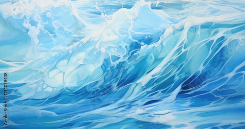 beautiful underwater view of ocean waves, water texture, close up, hyper realistic oil painting