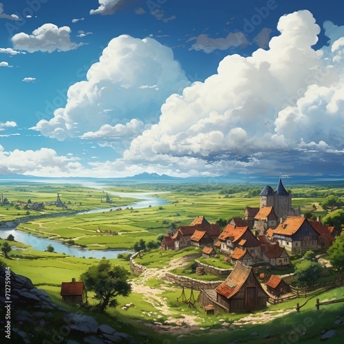 Beautiful villages and open sky image Generative AI