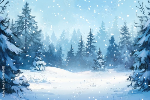 Beautiful winter landscape with snow covered trees.Christmas background with generative ai