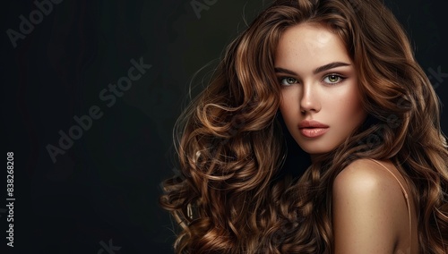 Beautiful woman Beauty brunette girl with long and shiny wavy black hair . Beautiful woman model with curly hairstyle
