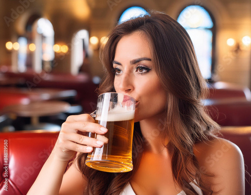 beautiful woman drinking beer AI generated