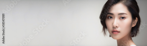 Beautiful young Asian woman with clean fresh skin isolated on white background, Face care, Facial treatment, Cosmetology, beauty and spa, Asian women portrait