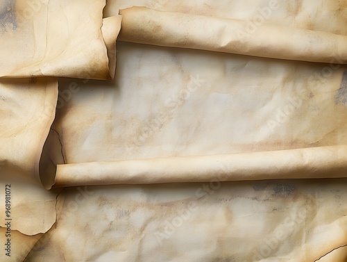 Beautifully folded sheets of textured parchment paper showing off its unique folds and curves.