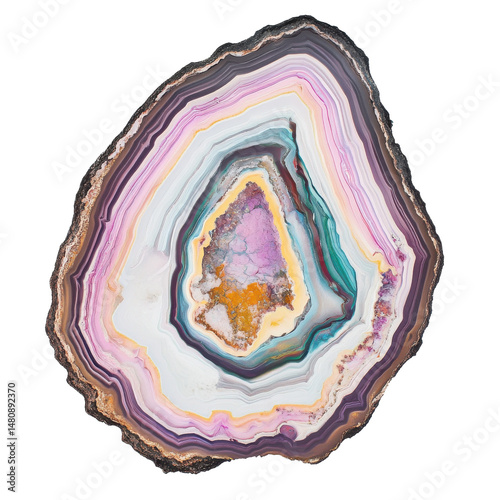 Beautifully Layered Agate Slice with Vibrant Colors and Intricate Patterns on transparent background
