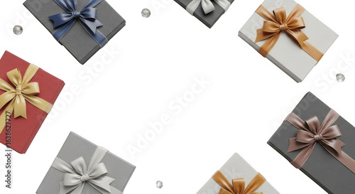 Beautifully Wrapped Presents with Festive Ribbons and Sparkle Against a Black Background for Celebration and Gifting Themes