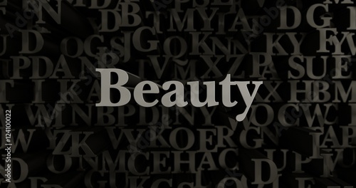 Beauty - 3D rendered metallic typeset headline illustration. Can be used for an online banner ad or a print postcard.