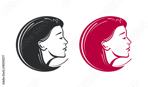 Beauty salon, spa, barbershop logo. Beautiful young woman label or icon. Vector illustration