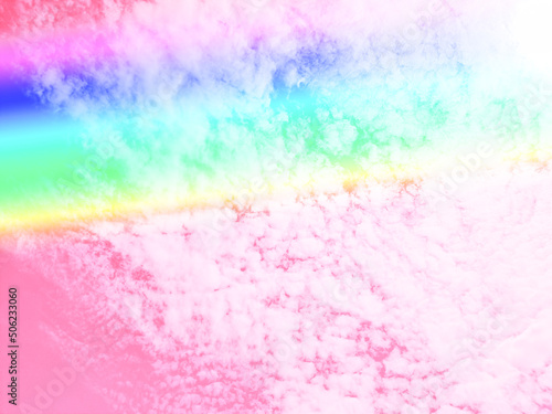 beauty sweet pastel pink green colorful with fluffy clouds on sky. multi color rainbow image. abstract fantasy growing light