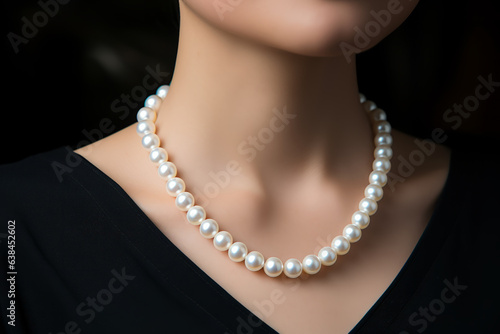 Beauty wearing a white pearl necklace , fine jewelry concept picture