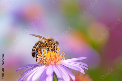 Bee Collecting Nectar on a Aster Flower