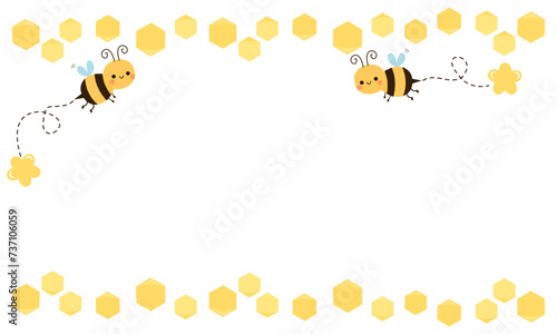 Beehive honey sign with hexagon grid cells and bee cartoon on white background vector.