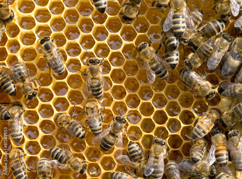 bees swarming on a honeycomb