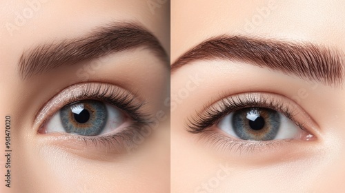 Before and after shot of eyebrow grooming, showcasing the transformation from natural to perfectly shaped brows.