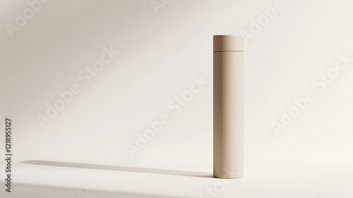 Beige cylindrical container on a minimalist white background. Perfect for product display or branding.