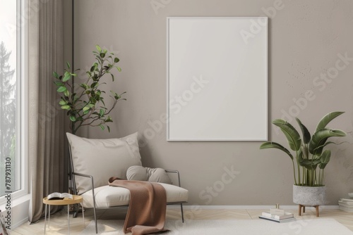 Beige Scandinavian Interior with Poster Mockup created with Generative AI