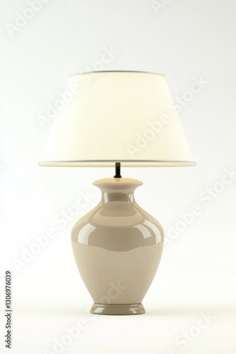 Beige table lamp, white shade, home decor, minimalist background, website design