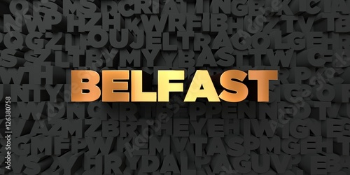 Belfast - Gold text on black background - 3D rendered royalty free stock picture. This image can be used for an online website banner ad or a print postcard.
