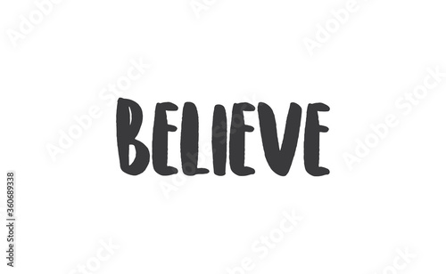 Believe Lettering. Hand drawn style typographic text. Motivational quote for print.