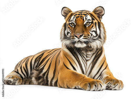 Bengal Tiger Lounging with Elegance, Highlighting Its Beautiful Stripes
