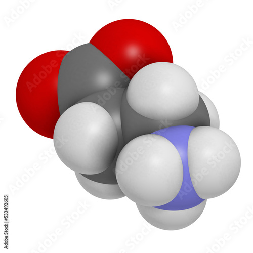 Beta-alanine molecule. Naturally occurring beta amino acid. Precursor of carnosine. Athletes often use beta-alanine supplements.