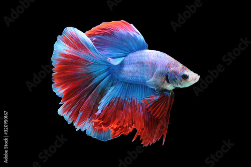 Betta fish, siamese fighting fish, betta splendens isolated on black background, fish on black background, Multi color Siamese fighting fish,