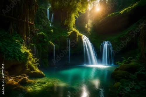 Beyond the door a breathtaking world of floating islands - AI Generative