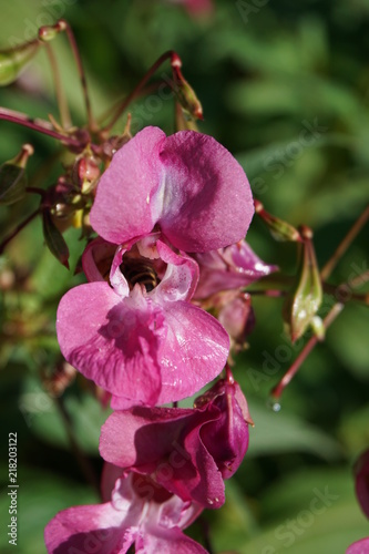 Biene,Bach, Lilien, pink, rosa, Gewässer, Guten Morgen, Tau