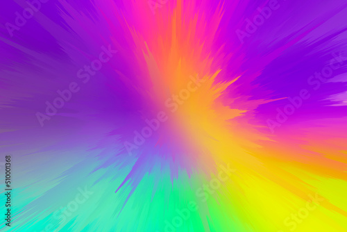 Big bang 3d illustration. Technology and futuristic rainbow gradient background. Abstract frozen iridescent holographic splash texture. Sharp and cold surface