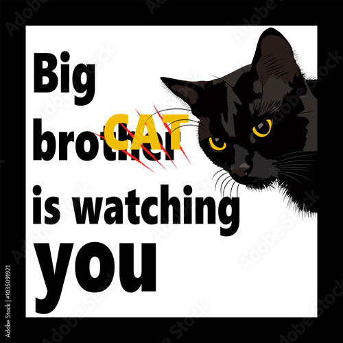 Big cat is watching you. Cats watch people. Vector illustration.
