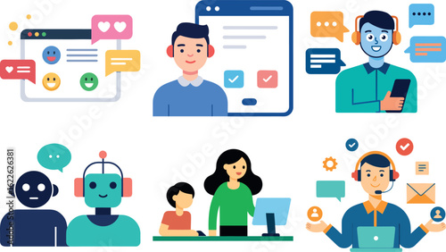 Big Data and Cloud Computing illustration set. Set Of Business characters using remote servers to analyzing large sets of data and recognizing mistakes. Actionable data concept.